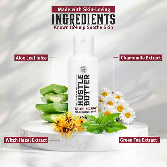 Introducing Hustle Butter Numbing Spray, the game-changing solution from the trusted name in tattoo aftercare, Hustle Butter. Designed to provide fast-acting, effective pain relief, this spray helps you relax and your artist focus, making your next tattoo session more comfortable and enjoyable than ever before.