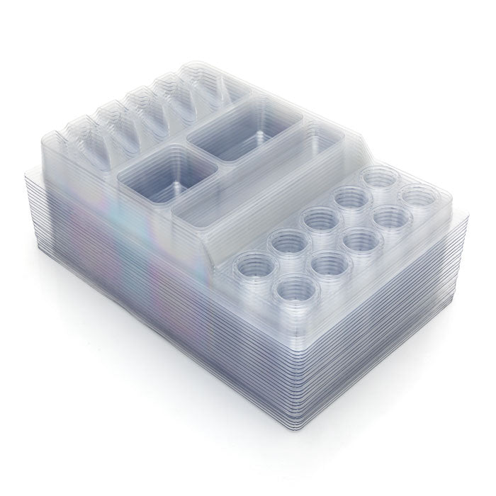 ✯ 18 available slots: - 10 x inks - 5 x cartridges - 3 x additional slots for your own needs (creams, ointments, pads, etc.)✯ 25 Trays / Pack